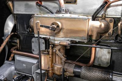 The gear and hand-operated rear-wheel brake controls were on the driver's right but there was a door for the driver (unlike the 30/98 or 25), while the spark and throttle levers were on the steering wheel together with an air lever working a valve in the induction pipe (after the throttle). There was also a mixture control (choke) on the dash.