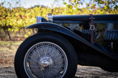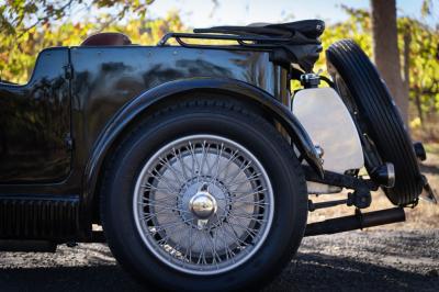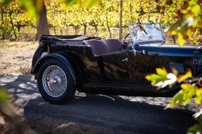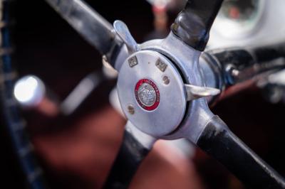 At one point under water during a flood, today this special and storied Lea-Francis presents in excellent ‘driver’ condition. Its black paintwork gleans, beautifully contrasted by a nicely-patinaed burgundy-trimmed interior. It also comes with a large folder with copious information outlining its history, owner correspondence, and receipts.