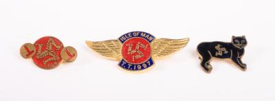 BADGES: A collection of three 'Isle Of Man' motorcycle related badges [Location: Melbourne] |