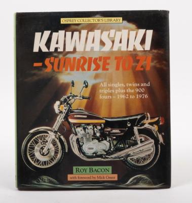 KAWASAKI: A hardcover motorcycle book including a 'Kawasaki Sunrise To Z1' by Roy Bacon, 190 pages with dust cover [Location: Melbourne] |