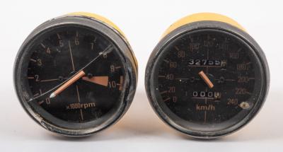 HONDA GAUGES: A pair of Honda CB1100RB gauges including a 0-240 km/h speedometer and a 0-10 x1000 rpm gauge [Location: Melbourne] |
