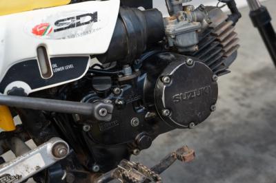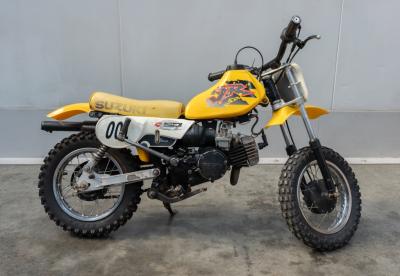 The Suzuki JR50 is a miniature motorcycle with a 49 cc (3.0 cu in) displacement and a single-speed automatic-transmission, using a centrifugal clutch and height adjustable suspension. An oil injected two-stroke engine provides optimum lubrication and an oil level window makes it easy to see when a refill is needed. It is designed for children ages 5 to 12.