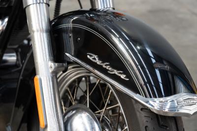 Fusing nostalgic styling and modern engineering, the Harley-Davidson Heritage Softail Custom was designed for riders who appreciate tradition, comfort, and long-haul capability. Exuding vintage appeal, the Heritage Softail Custom drew heavily from earlier designs, and featured large, deeply valanced mudguards, a large chrome headlight nacelle, and a wide, comfortable seat. The chrome accents, and wire-spoked wheels also paid homage to Harley-Davidson’s heritage. The fuel tank featured Harley’s classic badging and included a large console with a speedometer, odometer, and fuel gauge. The chrome tank console and the nostalgic tank emblem font reinforced the retro aesthetic.