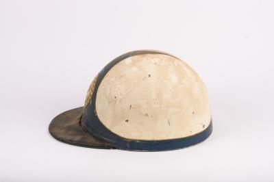 PUDDING-BASIN HELMET: A circa 1950s 'J.A.P' pudding-basin helmet, with neck leather  [Location: Melbourne]