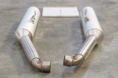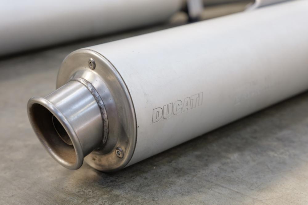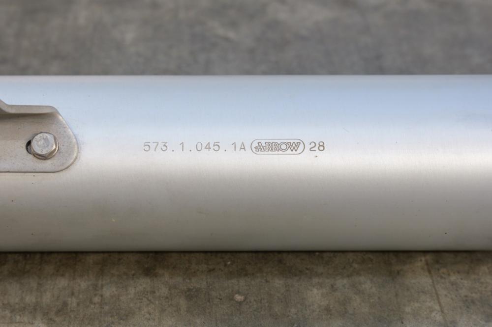 DUCATI ST4 MUFFLER: A set of Ducati ST4 mufflers, with '573.1.045.1A ARROW 28' inscribed on the side [Location: Melbourne]