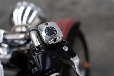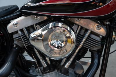 At the heart of the FX Super Glide was the FL’s 74 cubic inch (1206cc) Shovelhead V-twin engine, a powerplant that had become standard on the company's big twins since 1966. The Shovelhead earned its nickname from the shape of its rocker covers, resembling coal shovels. The engine featured a 45-degree V-twin configuration, with a bore and stroke of 87x100mm, and two valves per cylinder operated by a single, gear-driven camshaft and pushrods. It was also noted for its toughness, this coming through thick crankcase castings, Timken roller main bearings and forged steel connecting rods. The gearbox was still only four-speed and with an 8:1 compression ratio, and 38mm  Bendix carburettor, the Super Glide delivered around 58 horsepower at 5,150rpm. Kickstart only was provided for the FX, with the FXE electric start version joining it for 1974. The FXE’s starter system combined the FLH starter with the XLH battery.