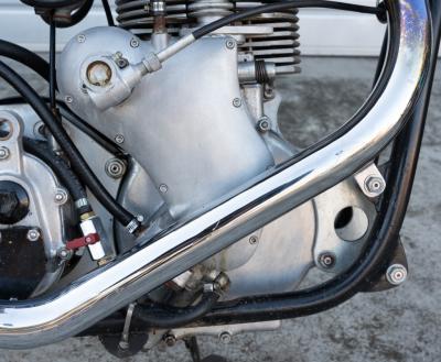 This “Smith” frame has been fitted with a race tuned version of the 86 mm square engine. It has been fitted with a big fin barrel for racing and the close ratio type 5 gearbox (same ratios as the later Venom model).