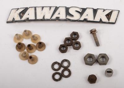 KAWASAKI BADGE: A used Kawasaki badge with bolts and brackets [Location: Melbourne] |