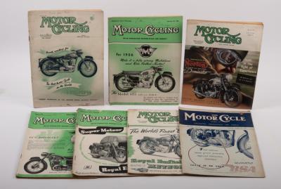 MOTOR CYCLING: A collection of seven 'Motor Cycling' magazines, one 1947 issue and six 1950s issues [Location: Melbourne] |