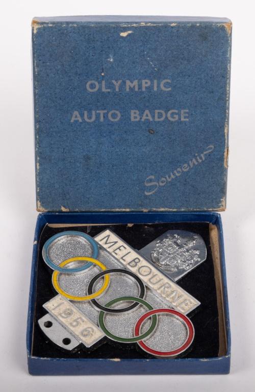 1956 OLYMPICS: A 1956 Melbourne Olympic Games grille badge by H.R. Hobson Pty Ltd Melbourne, 10.5cm high, 10cm wide, with box
