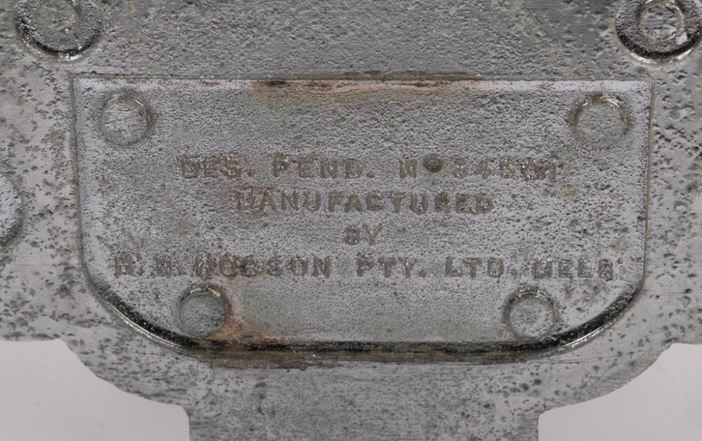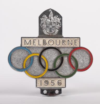 1956 OLYMPICS: A 1956 Melbourne Olympic Games grille badge by H.R. Hobson Pty Ltd Melbourne, 10.5cm high, 10cm wide