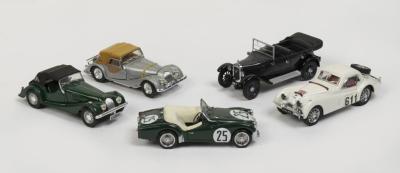 MODELS: A collection of five 1:43 scale British car models including Austin, Triumph and Morgan |