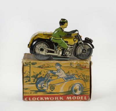 A.A PATROL: A scarce c1950s 'A.A Patrol' tin clockwork motorcycle and sidecar, with original box, British Made |