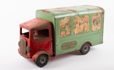 JRD TOYS: A c1950s-1960s wind up tin toy Citeron H Van by JRD (Jean Robert Delord) Toys France, with 'Antar' lubrication/oil company decals to side panels, measures 35cm long |