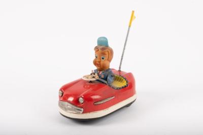 BUMPER CAR: A c1960s Japanese tin toy bumper car 'No.15', wind up, with seated figure, 14cm long. By KO Toys Japan |