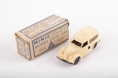 MINIC: An early clockwork plastic bodied Minic Morris Light Van model, within original box. One end of box with missing end flaps.