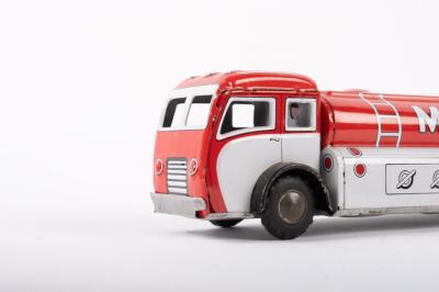 MOBIL OIL: A tin toy Mobil Oil petrol tanker, 22.5cm long, made in Japan, Manufacturer unknown, likely c1960s-1970s period.