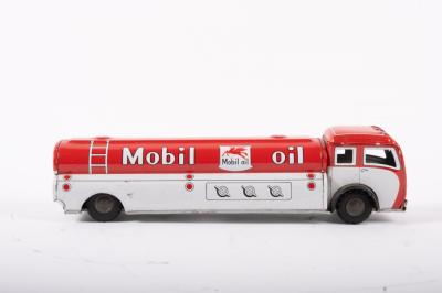 MOBIL OIL: A tin toy Mobil Oil petrol tanker, 22.5cm long, made in Japan