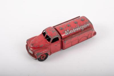 DINKY TOYS: A Dinky Toys No.440 Studebaker Mobilgas tanker, paint faded with paint chips, non matching front tyres.