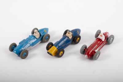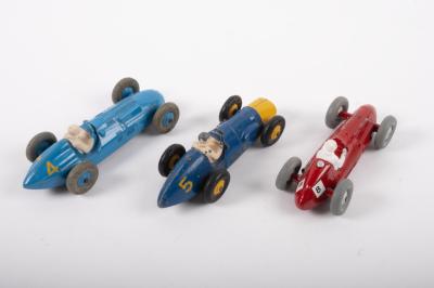 DINKY TOYS: A group of three c1950s Dinky Toys open wheel racers including No.23H 'Ferrari', No.23K 'Talbot Lago' and No.23N 'Maserati'