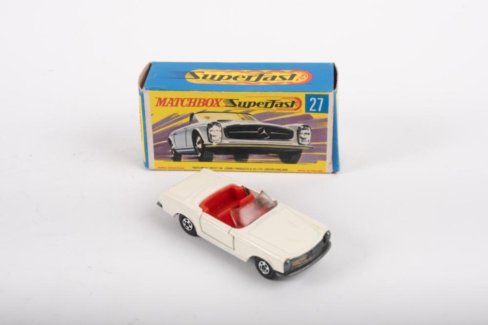 MATCHBOX: A Matchbox Superfast No.27 Mercedes-Benz 230SL in white with red interior, within original box