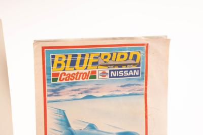 BLUEBIRD: A Corgi Toys No.153 Proteus Campbell Bluebird model, with souvenir cake of salt from Lake Eyre South Australia, along with a selection of commemorative paraphernalia relating to the Bluebird and land speed record vehicles, includes 'Bluebird at Bonneville' by Jack Vettriano card, two lift out sections from magazines relating to the Bluebird and the Golden Arrow - both with some water damage, and Kellogs 'Land Speed Legends' timeline card showing the various Speed Record attempts.