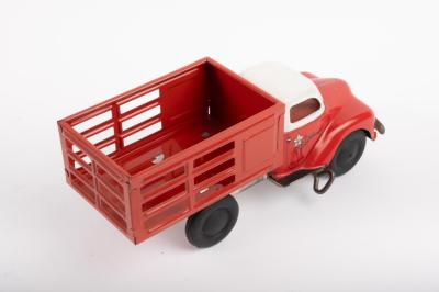 WALT REACH: A c1950s Courtland Stake Bed Truck tin plate toy by Walt Reach Toys USA, 21cm long