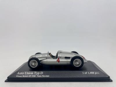 AUTO-UNION: A 1:43 scale model by Minichamps of the Auto-Union Typ D - 1938 British Grand Prix winner, limited edition 1 of 1,488 pieces, complete with original packaging. [Location: Sydney] |