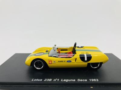 Lotus: A 1:43 scale model by Spark of the 23B in 1963 Laguna Seca livery, in original packaging [Location: Sydney] |
