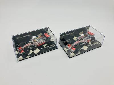 MCLAREN-MERCEDES: Two Minichamps 1:43 scale models of the Vodafone McLaren Mercedes MP4-22 of Lewis Hamilton (2007) and MP4-23 Kovalainen (2008) boxed [Location: Sydney] |