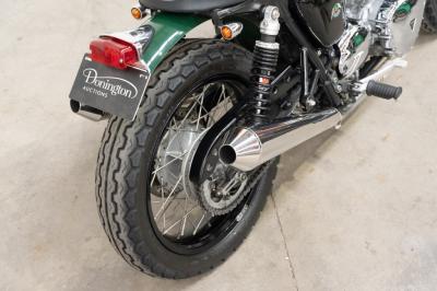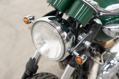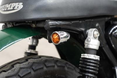Over the last 120 years this Australian delivery example has been customized in the style of a traditional old school “bobber “. It was stripped down and re styled with bespoke details and features, including special “ sun “ alloy wheels fitted with vintage style Dunlop tyres. The sports exhaust was slightly angled higher, a shorter seat and cover fitted, and the fuel tank painted in “Isle of Man” green. The handlebars are XR750 style and other custom features include the rear “ bob” mudguard, vintage tail light and minimalist indicators and mirrors. The bike has been recently serviced with a new battery and tyres. It is unregistered but the plate UK-800 is available if required.