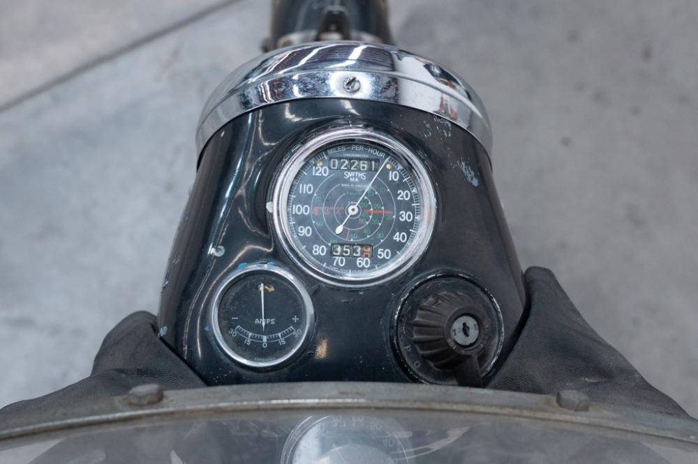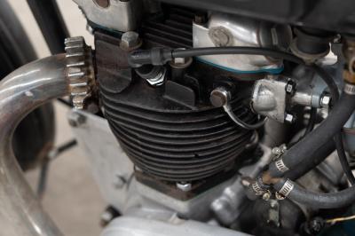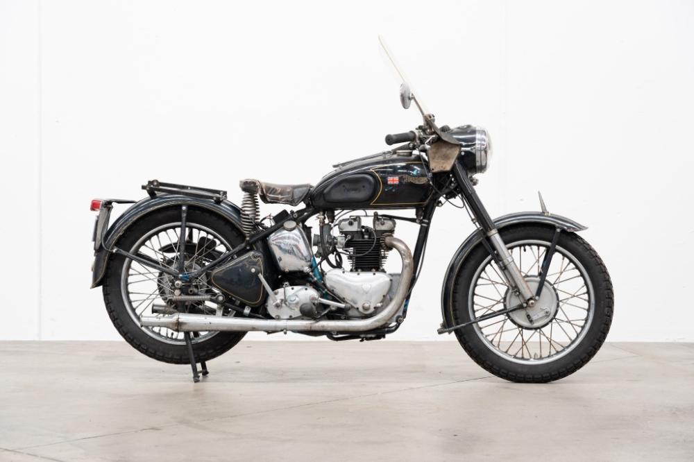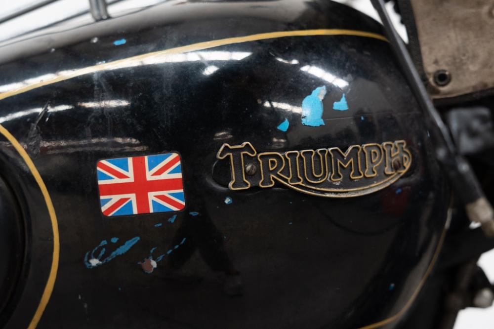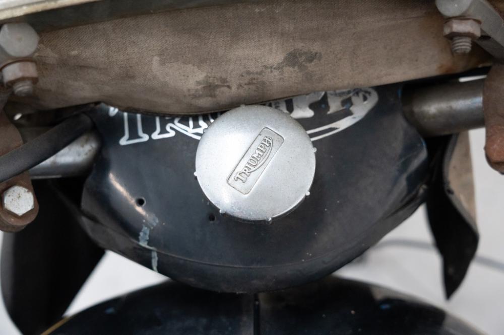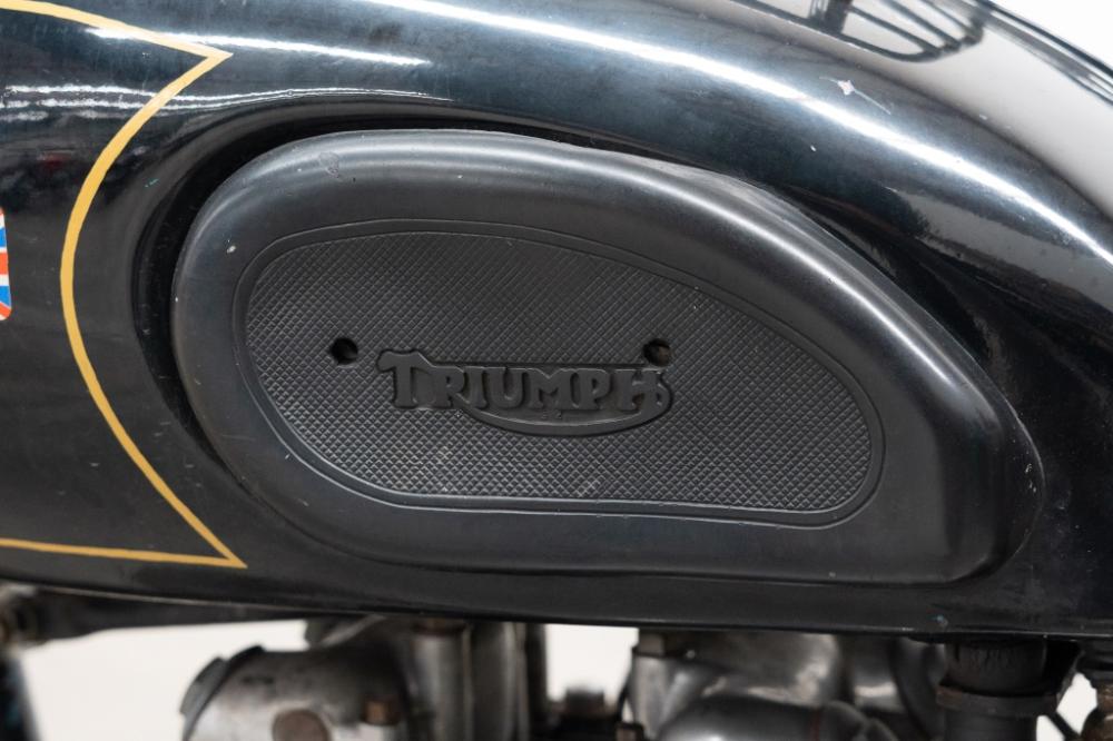 This matching 1954 Triumph 6T Thunderbird is presented in remarkably good original condition. Our vendor has informed us that it has been in his ownership for the last 20 years. Over the course of ownership, the motorcycle has undergone a 12volt conversion with an electronic regulator. The top end of the engine has been rebuilt, and it is believed that the bike has only traveled a few thousand kilometers since its top end rebuild due to the poor health of the vendor who is now unable to ride.