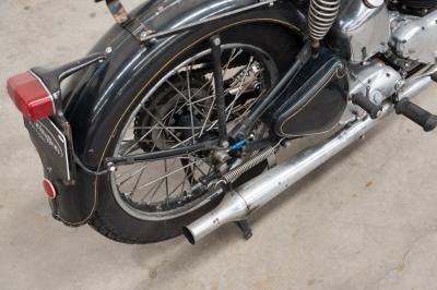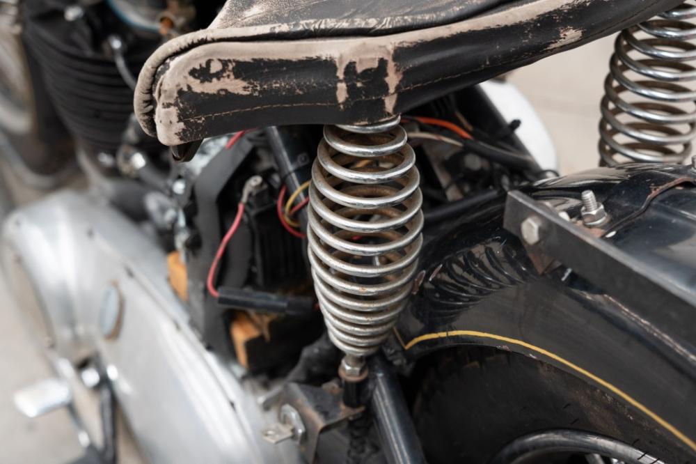 Along with the increase in capacity, many engine components were updated for the Thunderbird. With a 71x82mm bore and stroke and Amal 276 1-inch carburettor the engine produced 34 horsepower at 6,300rpm. One of the advantages of basing the 6T engine on the 5T was that it bolted directly into the existing 5T frame, with the spring wheel still an option.