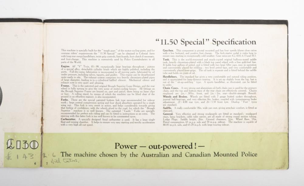 BROUGH SUPERIOR: An original and rare 1939 Brough Superior 12 page model range brochure