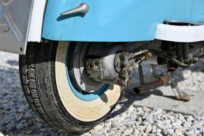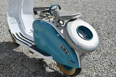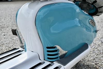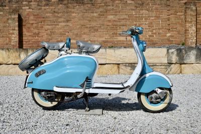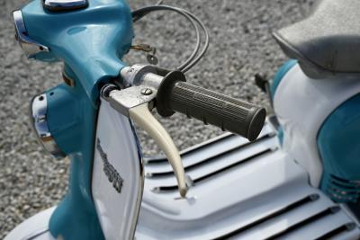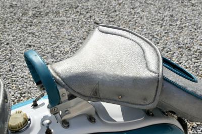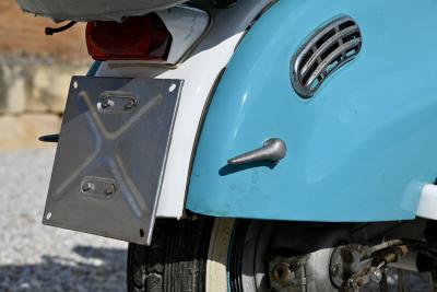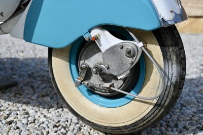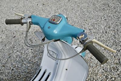 Little used in recent years and not registered by the current owner (the odometer 11 miles on the clock), the scooter starts and runs but will need some minor mechanical recommissioning to adjust brakes, kickstart etc. The paint is still good, with only a few minor blemishes but some of the brightwork has tarnished over the years and the chrome is lightly pitted.