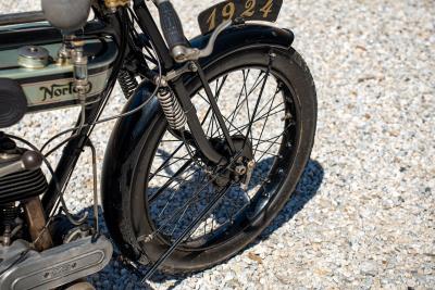 According to the replacement UK buff logbook, NW 7866 was originally registered on July 10, 1924 and the earliest name listed is Kenneth Wilkes of Harrogate, Yorkshire in 1945. The frame and engine numbers listed in the logbook match those stamped on the bike. A further five owners are recorded between 1946 and 1978. Following a period off the road, the bike was re-issued with plates SV 6653 to a gentleman from Newquay, Cornwall in 2015 who appears to have purchased the Norton in 1997 according to old V5 forms in the history file.