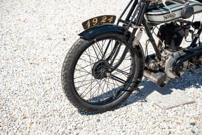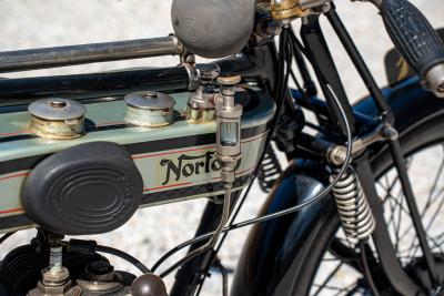 Founded in 1898 as a supplier of parts to the motorcycle industry, Norton were building their own motorcycles by 1902 and began using their own engines six years later. Designed by James Lansdowne Norton himself, the long stroke side-valve single initially displaced 633cc but was soon followed by a smaller capacity 490cc model catalogued as the Model 16 with a bore and stroke of 79 x 100mm. Initially launched with belt drive, this was updated to chain drive and a Sturmey Archer four-speed gearbox.