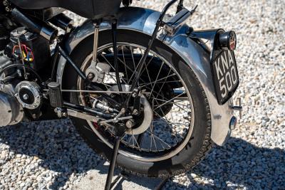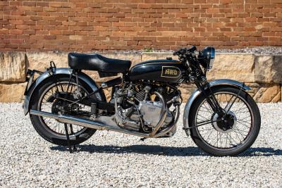 Already well-established by the early post-war years, Vincent’s flagship Rapide was the world’s fastest production motorcycle until the even quicker Black Shadow appeared. Originally launched in 1937, the Series A Rapide utilised an air-cooled V-twin engine designed by talented Australian Phil Irving housed in a frame featuring cantilever rear suspension, a stainless steel tank and a Burman foot-change four-speed gearbox. Displacing 998cc, the early V-twins suffered from gearbox and clutch problems, issues addressed with the Series B announced in 1945.