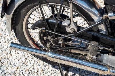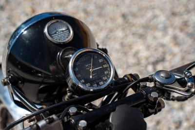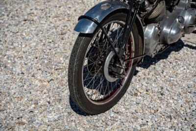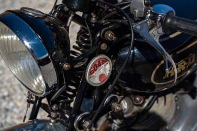 Supplied with copies of the Works Order Form and Two Certificates Authenticity provided by the Vincent H.R.D. Owner’s Club (one dated 1990 and the other 1997), this Series B Rapide was a standard model tested by Thomas on March 2, 1949 and dispatched to Kings of Manchester on March 11. Supplied with 7-inch lamp and dull chrome rim centres, the bike featured standard gearbox ratios, black and gold finish and dual seat arrangement.