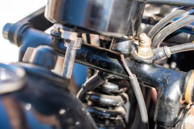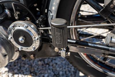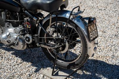 Using old UK registration documents, the history of the Rapide wearing plates KNA 500 can be traced back to a gentleman named Stephen Moore of Sheldon, Teignmouth before passing to Martin Curl of Falmouth in May 1988. The following owner, Ian Middleton of Truro, Cornwall engaged Vincent Owner’s Club member and respected restorer Tony Hutchinson to carry out an extensive mechanical overhaul of the Rapide in September 2006. Completed in April 2007, detailed notes were kept documenting all the work carried out, along with receipts for parts purchased from both the V.O.C. and Maughan & Sons Ltd. Photos on file show the engine stripped down and the bearings replaced, the cylinder heads overhauled and the motor re-assembled. The gearbox internals were inspected and noted as being in "pristine" condition at the time while the Brampton forks had new spindles and forks fitted. Although mechanically recommissioned by Hutchinson, the previous owner fortunately elected to preserve the Vincent's lovely patina.