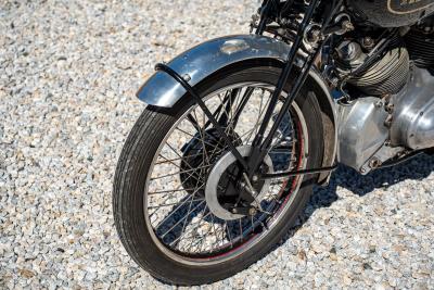 The Vincent was subsequently sold by specialist dealer Verralls of Handcross, West Sussex to our vendor in November 2007. An experienced Vincent enthusiast, he was attracted by the Rapide’s originality and lovely patina but was based overseas at the time and as a result the bike was carefully placed in warm dry storage in Queensland, Australia, where it has remained ever since. As a result the Vincent will require some recommissioning before firing up, as the engine/gearbox oil were drained when the bike left the UK and it has not been ridden for approximately 18 years. Sold unregistered, this exceptional Series B Rapide with matching front/rear frame and engine (including both cases) numbers is accompanied by a good history file and would be an outstanding addition to any serious collection of British machinery.