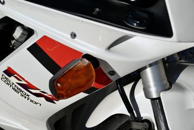 One of the all-time great sports bikes, Yamaha’s FZR1000 was launched in 1987 to critical acclaim and has gone to become a modern classic, ultimately winning Cycle World’s “Bike of the Decade” award. Replacing the FZ750, the FZR was powered by a liquid-cooled in-line four-cylinder unit with a bore and stroke of 75.5mm by 56mm for a total displacement of 989cc. Developing peak power of 148 bhp at 10,000rpm, the FZR’s engine was housed in Yamaha’s an all-new “Deltabox” perimeter-type frame fashion of light alloy, paired with new hollow-spoke rims. Drive went through a close ratio five-speed sequential gearbox.