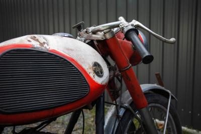 This 1961 YDS2 requires a full restoration. It is not running and is missing some components. The YDS2 didn’t originally include side covers, the handlebar is non-standard and one rubber tank pad is missing. Sold without documentation and unregistered, this is an excellent opportunity to resurrect one of the first Yamaha sporting two-stroke twins.