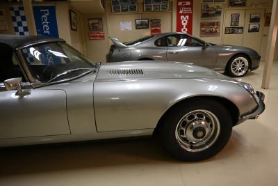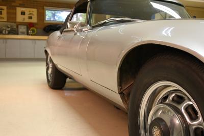 Bryan said,iIn around 1977 on a visit to Rod Murphy Motors (son of famed APG MG driver Les Murphy) in Brighton, Bryan Thomson spied in a showroom window, next door to Rod’s workshop, a stunning E-Type roadster.  He subsequently purchased it and used it for a daily driver for about 14 months before buying a new XJS Jaguar and parking the E-Type in the shed, using it sparingly thereafter.
