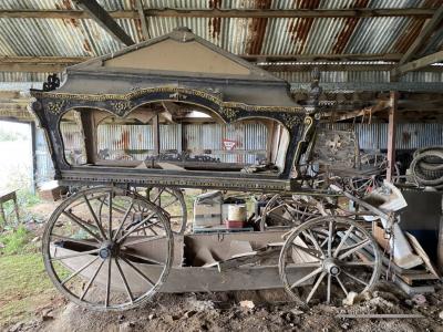 A spectacular American Hearse of the 1870s, sadly in completely unrestored and dilapidated condition. The vehicle is entirely complete but requires comprehensive restoration and new wheels. Obviously, with the required work, this will become a very desirable example of the coach builder’s art, and potentially a profitable hire vehicle. Alternatively, the hearse coachwork with its excellent carvings and decorations, may make a good basis for transferring to a vintage car chassis as a motor hearse or perhaps another use. Sold as is and may require some disassembly for transport.