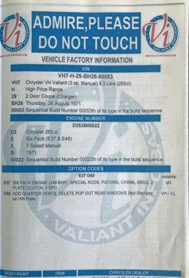 1971 Chrysler VH Valiant 770 Charger (Street “6” Pack E37)