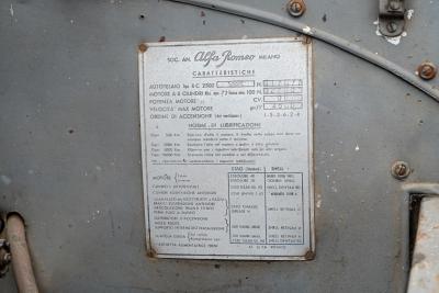 Following on from Jano’s legendary 6C and 8C models of the early 1930s and with war looming, Alfa Romeo launched an evolution of the earlier 6C 2300/2300B series at the Berlin Motor Show in February 1939. The new 6C 2500 featured a larger displacement 2443cc version of the classic in-line six-cylinder engine, with a bore and stroke of 72mm x 100mm and was available in a wide variety of chassis lengths and body styles. The most powerful 6C 2500 Super Sport was built on a short 2.7-metre wheelbase, while the Gran Turismo (and later Turismo) versions were on the longer 3.25-metre wheelbase platform. An even hotter version, known internally as the Tipo 256, was built specifically for racing in 1939, debuting at the Tobruk-Tripoli event and Alfa Corse fielded a team in the final Mille Miglia before war broke out.