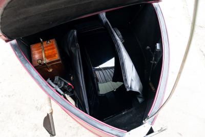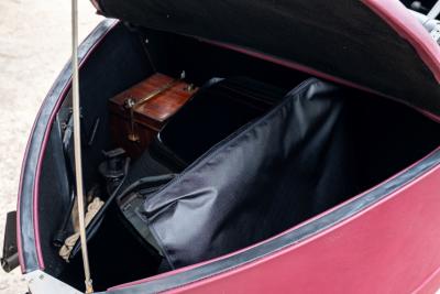 Re-entering the market following the merger with Daimler, BSA took a somewhat unconventional approach with a novel front-wheel drive three-wheel design by F W Hulse employing an air-cooled V-twin engine based on a Hotchkiss design and built in Coventry. Driving through a three-speed gearbox mounted between the front wheels, the BSA offered sophisticated features like independent front suspension, an electric start, reverse gear and full weather protection, with the folding hood and side screens stored in the rear locker.